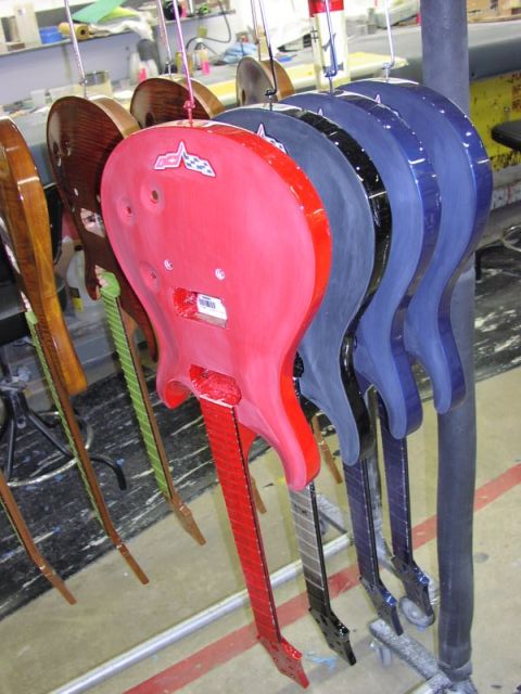 'Corvette' guitars in process using OEM Dupont body paint
